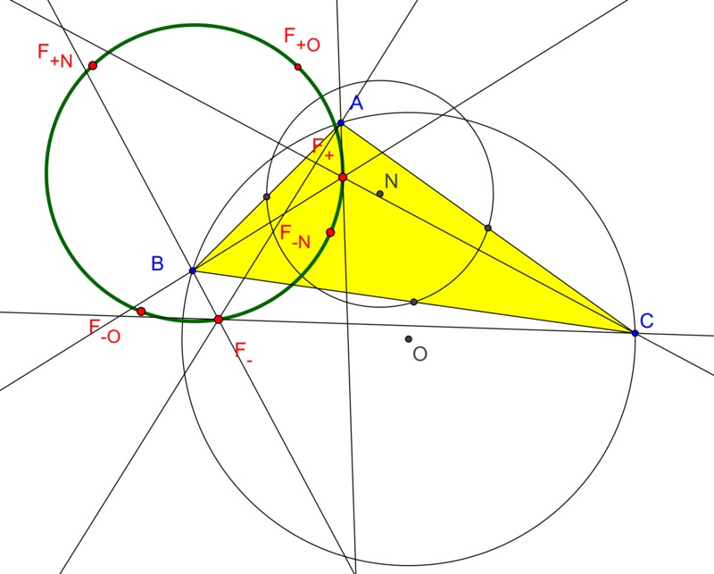F+, F-, F_{+N}, F_{-N}, F_{+O}, F_{-O} lie on a circle